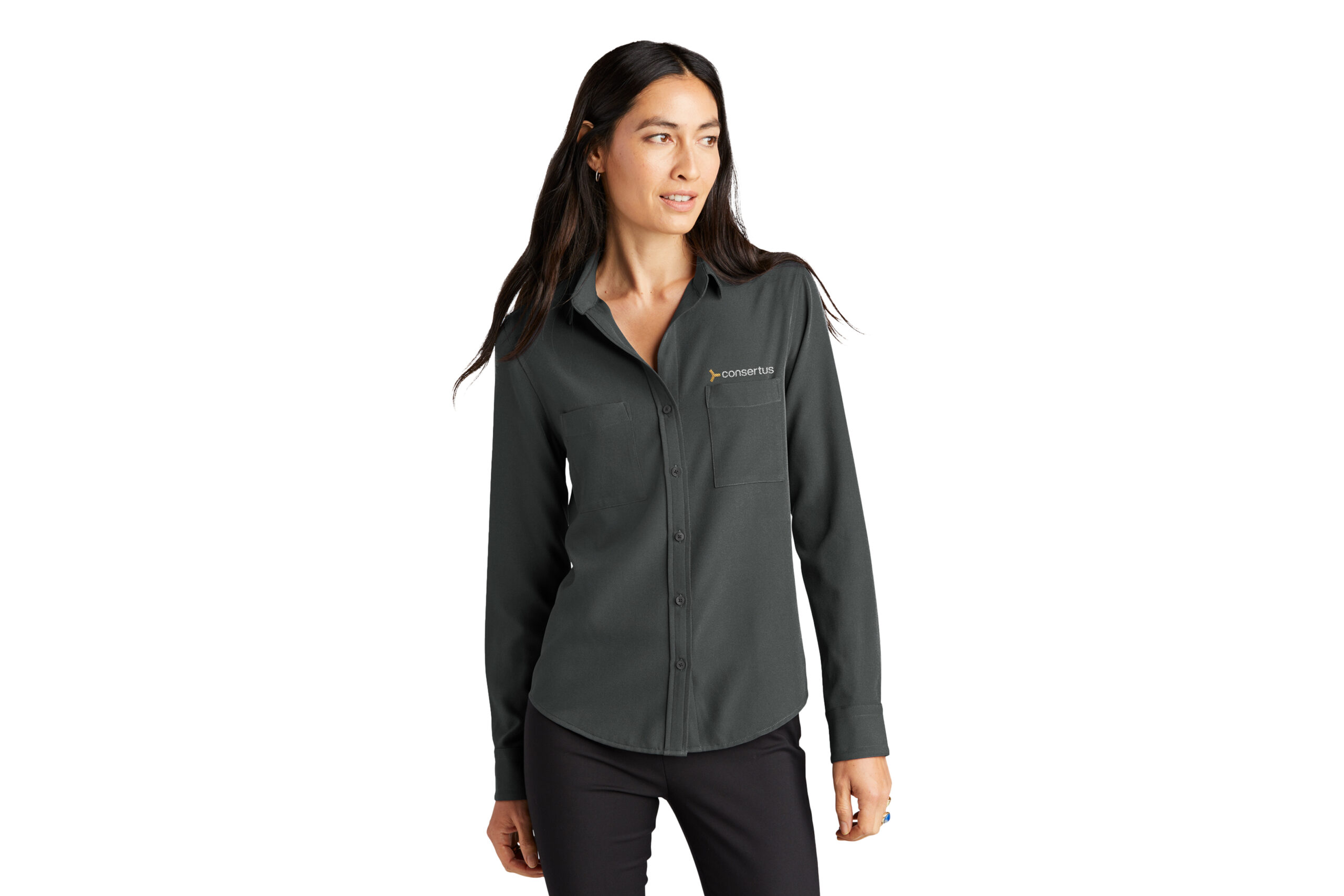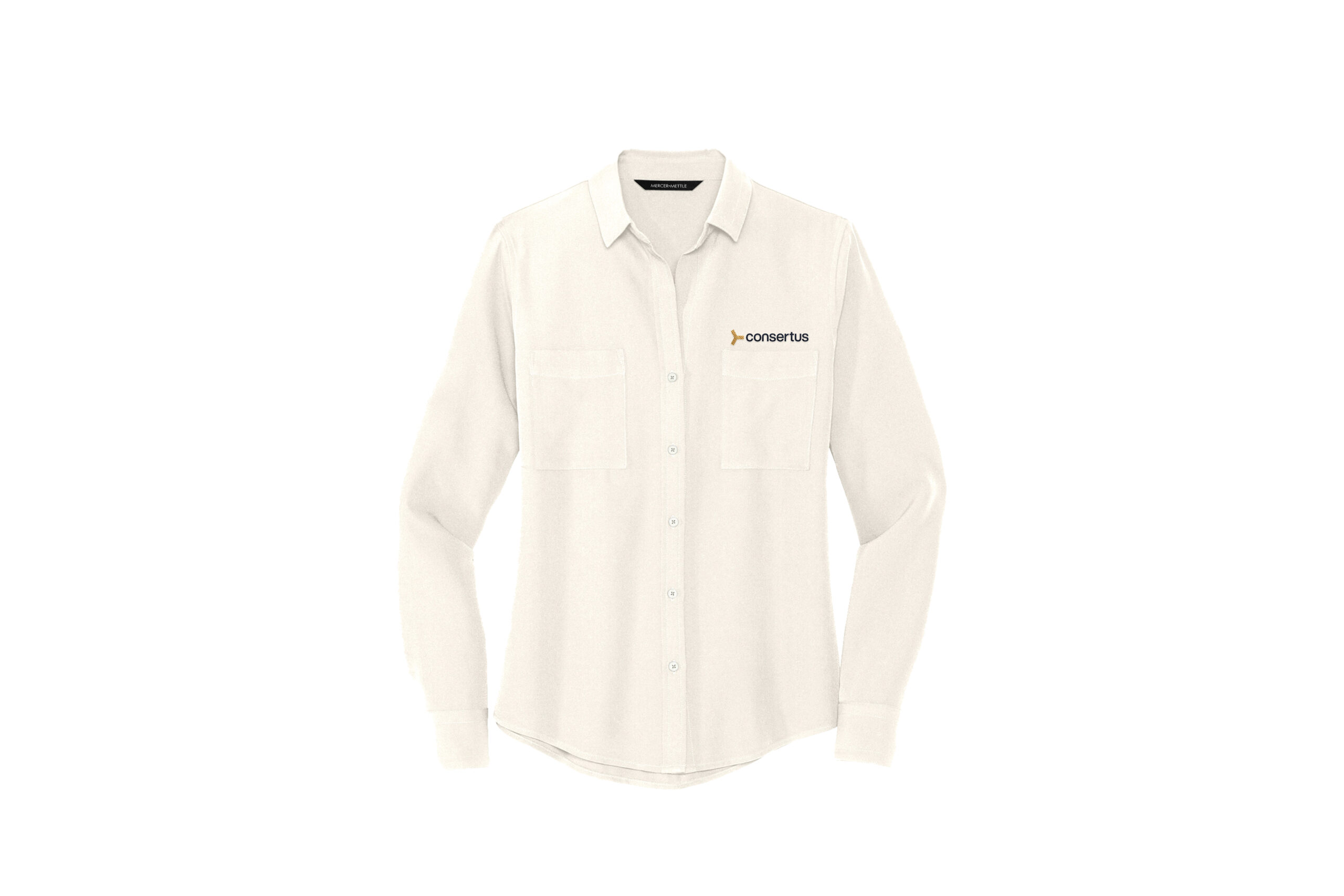 Taking a more refined approach to tailoring, this chic blouse offers movement and ease in a fine crepe fabric and soft fit. Adjustable button cuffs and a trend-right dropped hem add style and versatility for day-to-night wear.
